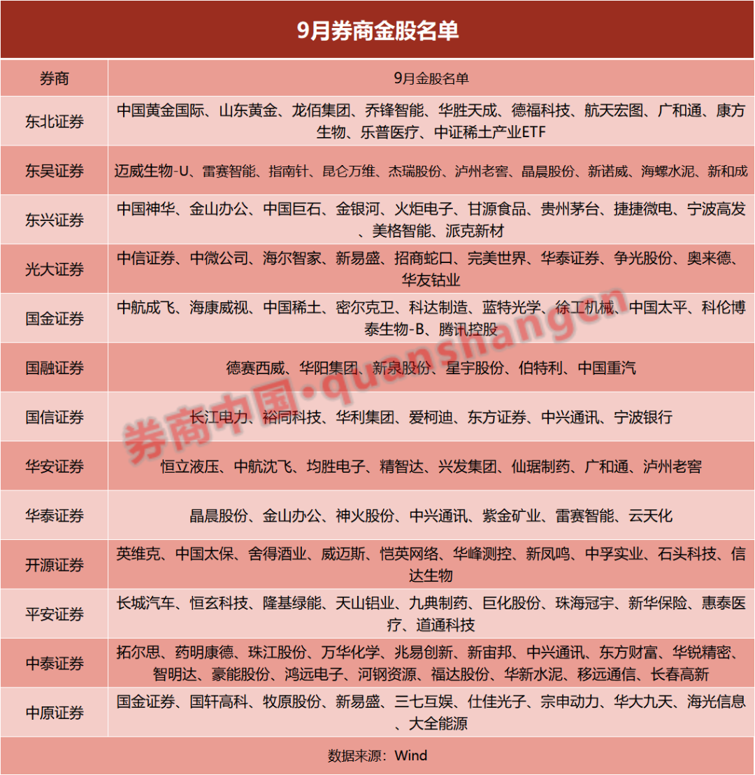 9月金股出炉