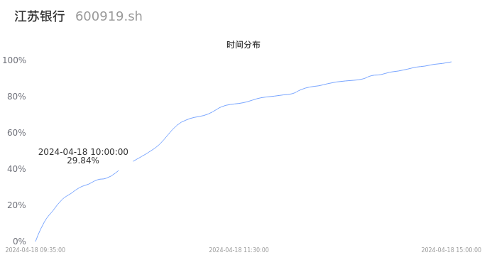 600919江苏银行2024年04月18日成交187.24万手,成交金额15.41亿元,相较昨日放量63.03万手,换手率1.02%,成交清淡。