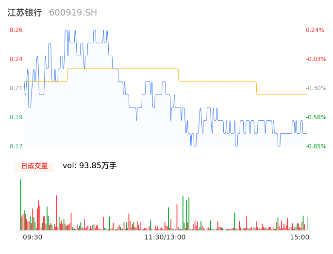 04月19日,江苏银行收报8.17,股价涨幅-0.85%,成交金额7.71亿元,换手率0.51%。