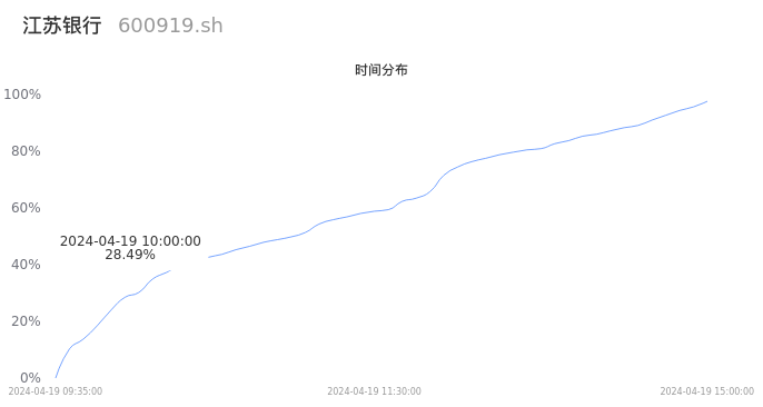 600919江苏银行2024年04月19日成交93.85万手,成交金额7.71亿元,相较昨日缩量93.39万手,换手率0.51%,成交清淡。