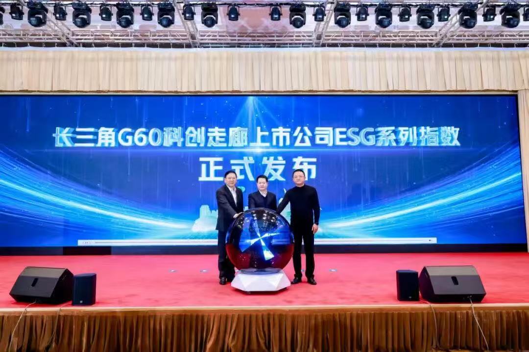 会上,G60联席办副主任贾占锋、江苏银行上海分行行长沈晓驰、杭州市绿色价值投资研究中心执行院长严展共同发布长三角G60科创走廊上市公司ESG系列指数。
