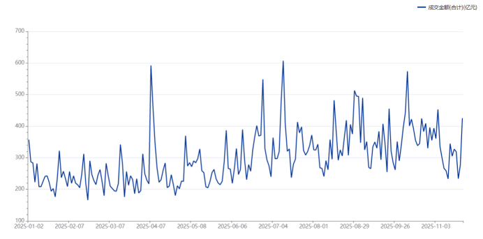 注:银行板块年内每日成交额情况(截至11月20日收盘)