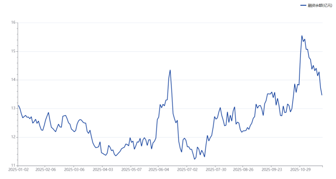 从资金面来看,相较于持续攀升的股价走势,中国银行近期的融资余额数据则持续下降。截至11月19日数据,其目前融资余额已降至13.47亿元,较10月30日时高点(15.56亿元)共减少近2.09亿元,降幅达13.4%。不过,从全年行情上看,中国银行目前的融资余额仍处于年内均值(12.55亿元)上方水平。