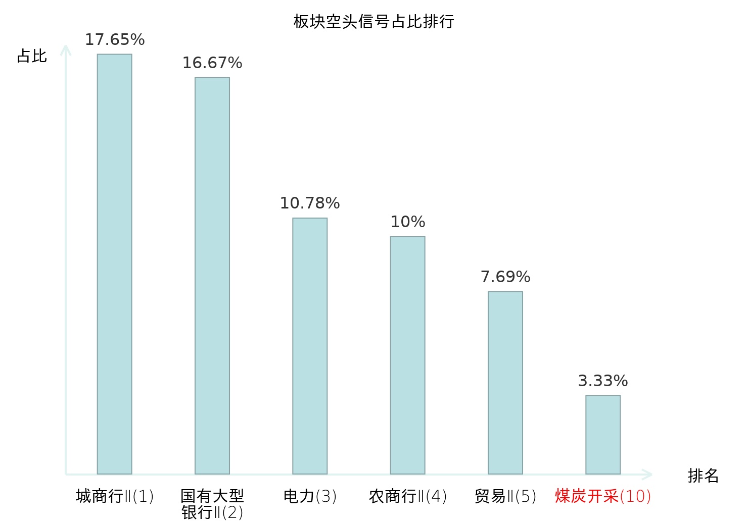 全市场所有行业板块中主力空头信号占比排名中,城商行Ⅱ板块位居第一。化学原料板块名次提升最快,较昨日上升122位。