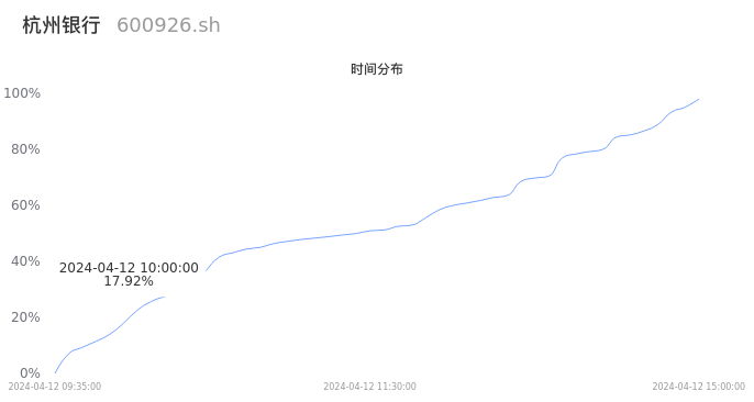 600926杭州银行2024年04月12日成交17.42万手,成交金额1.99亿元,相较昨日放量5.26万手,换手率0.32%,成交清淡。