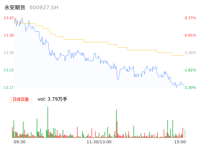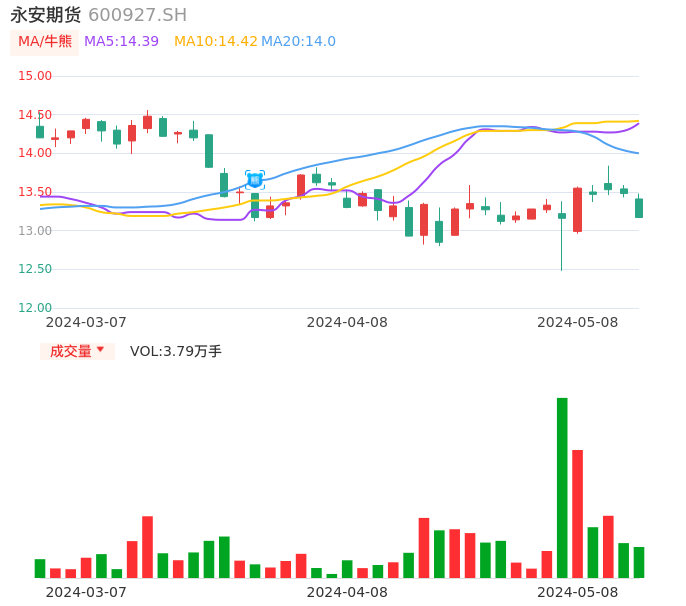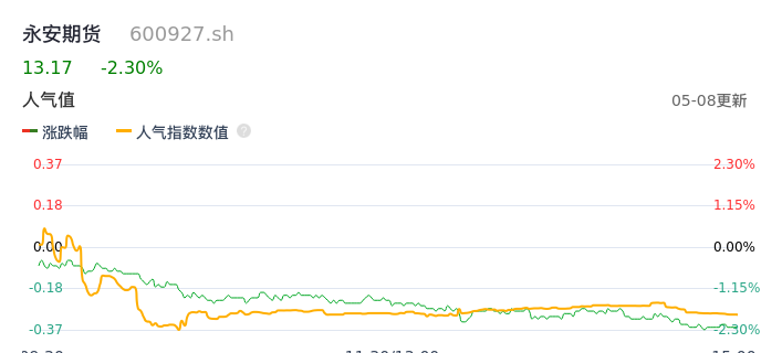 05月08日,永安期货收报13.17,股价涨幅-2.30%,成交金额5033.62万元,换手率0.72%。