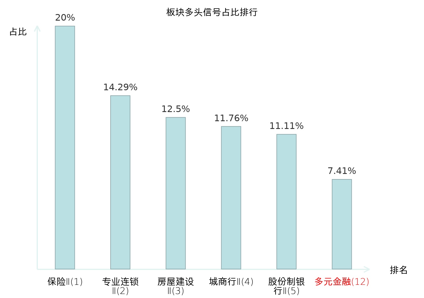 全市场所有行业板块中主力多头信号占比排名中,保险Ⅱ板块位居第一。保险Ⅱ板块名次提升最快,较昨日上升124位。
