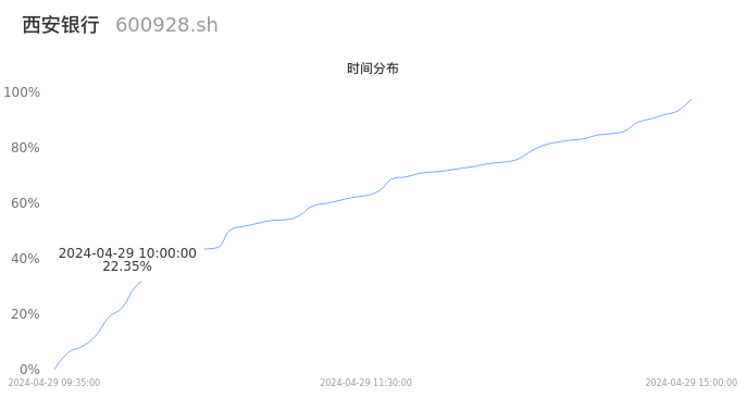 600928西安银行2024年04月29日成交36.12万手,成交金额1.29亿元,相较昨日放量5.27万手,换手率0.82%,成交清淡。