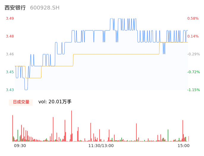 04月11日,西安银行收报3.48,股价涨幅0.29%,成交金额6937.28万元,换手率0.45%。