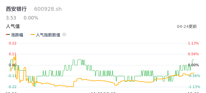04月24日,西安银行收报3.53,股价涨幅0.00%,成交金额6809.72万元,换手率0.44%。