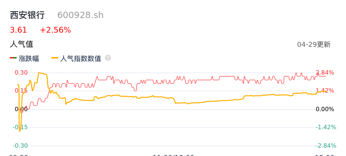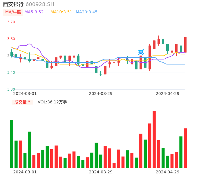 04月29日,西安银行收报3.61,股价涨幅2.56%,成交金额1.29亿元,换手率0.82%。