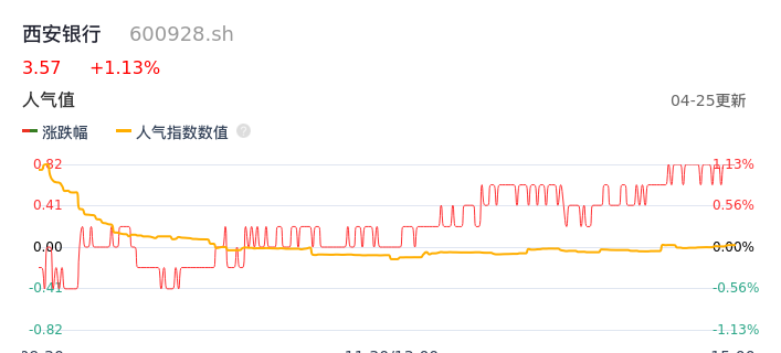 04月25日,西安银行收报3.57,股价涨幅1.13%,成交金额7269.29万元,换手率0.46%。