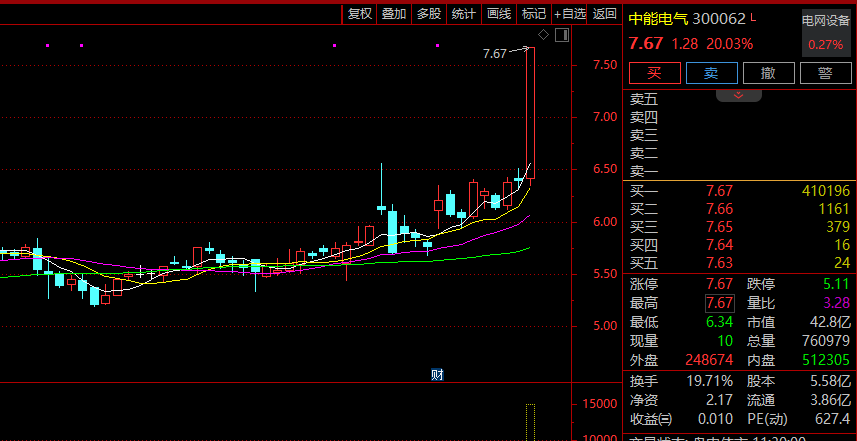 电网设备概念股早间走强,板块指数盘初高开高走,一度放量涨近3%,创2015年6月以来10年新高。中能电气(300062)开盘仅约5分钟直线20%涨停,创3年多新高,三变科技3分钟垂直涨停,神马电力4分钟涨停,摩恩电气也仅11分钟就强势涨停。