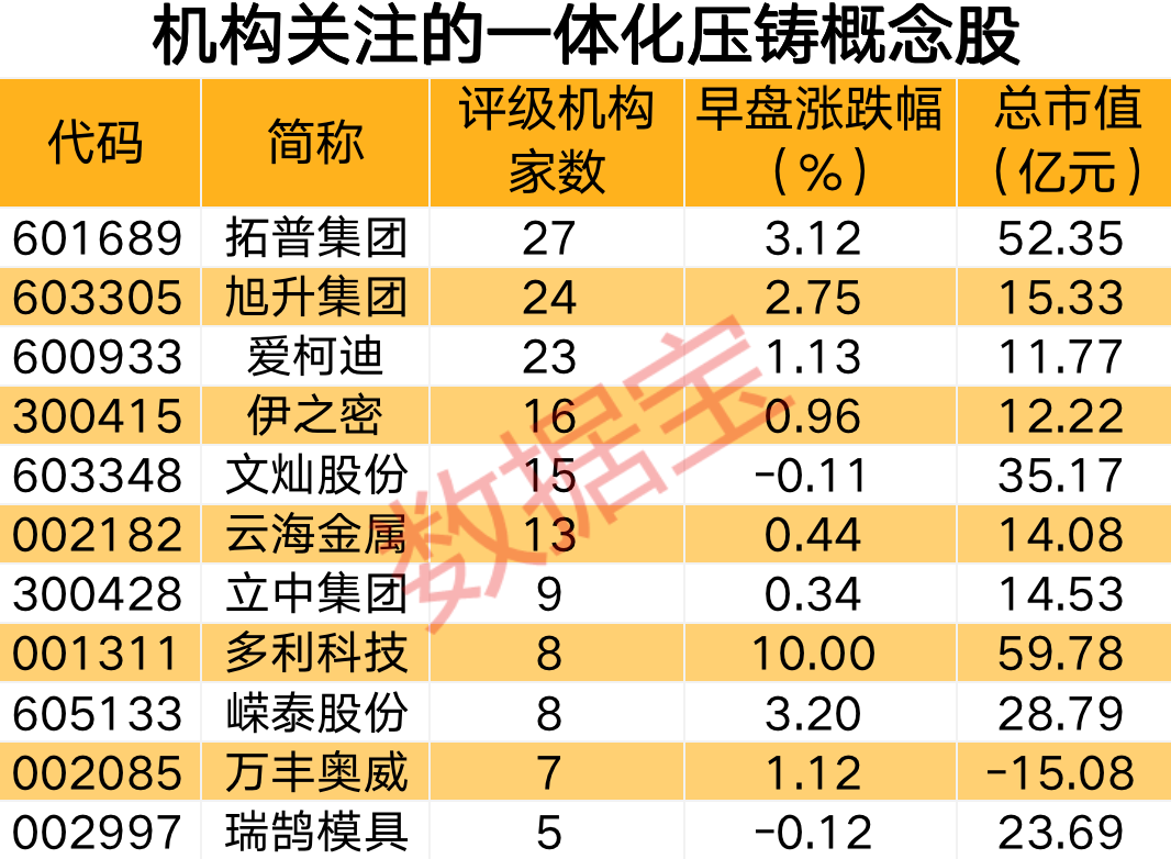 一体化压铸概念获机构关注