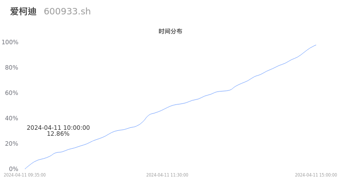 根据成交分布分析,该股票当天放量成交,成交清淡。时间上看,早盘前半小时成交量占据当天总成交量的12.86%;价格上看,成交呈现右偏峰。成交分布分析主要研究股票成交的分布特性,不具有预测功能,请知悉。