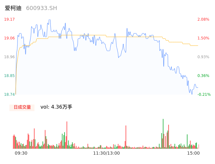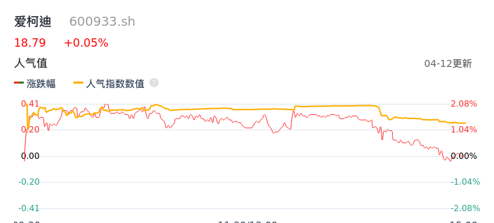 04月12日,爱柯迪收报18.79,股价涨幅0.05%,成交金额8298.96万元,换手率0.49%。