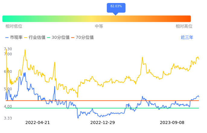 2023年09月08日,中国海油下跌1.77%收于19.37,今日成交金额6.86亿元。下文将从市盈率PETTM、市净率PB、市现率3个角度去分析公司估值情况。