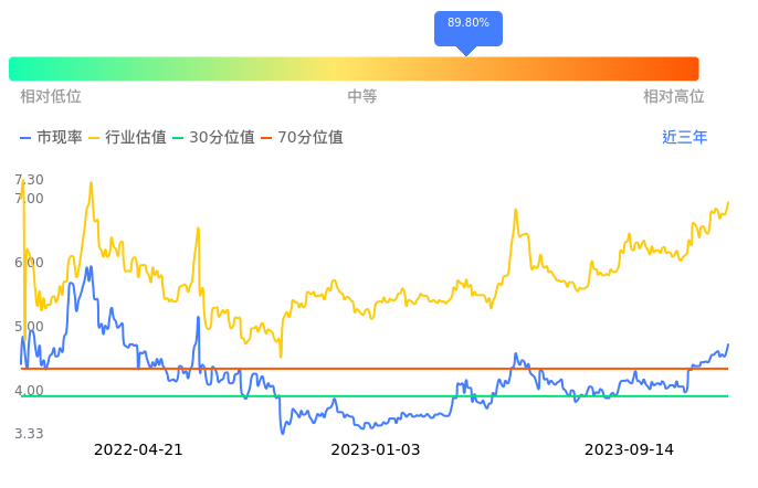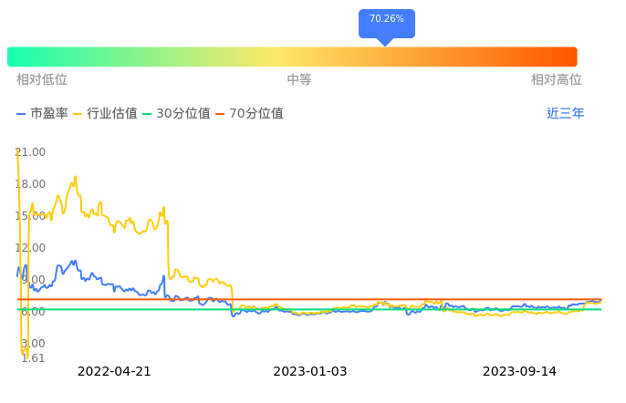 2023年09月14日,中国海油上涨3.16%收于20.23,今日成交金额12.60亿元。下文将从市盈率PETTM、市净率PB、市现率3个角度去分析公司估值情况。
