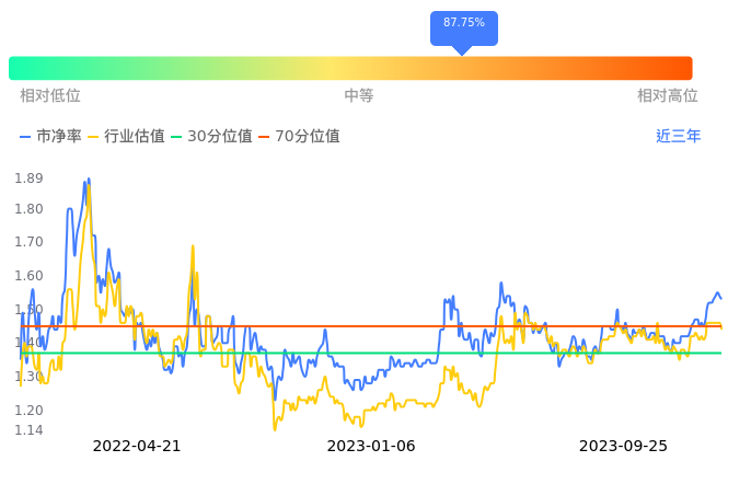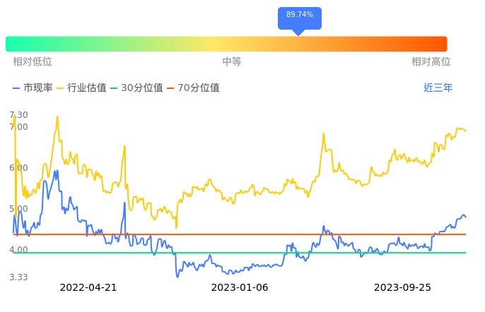 2023年09月26日,中国海油上涨0.20%收于20.48,今日成交金额6.94亿元。下文将从市盈率PETTM、市净率PB、市现率3个角度去分析公司估值情况。