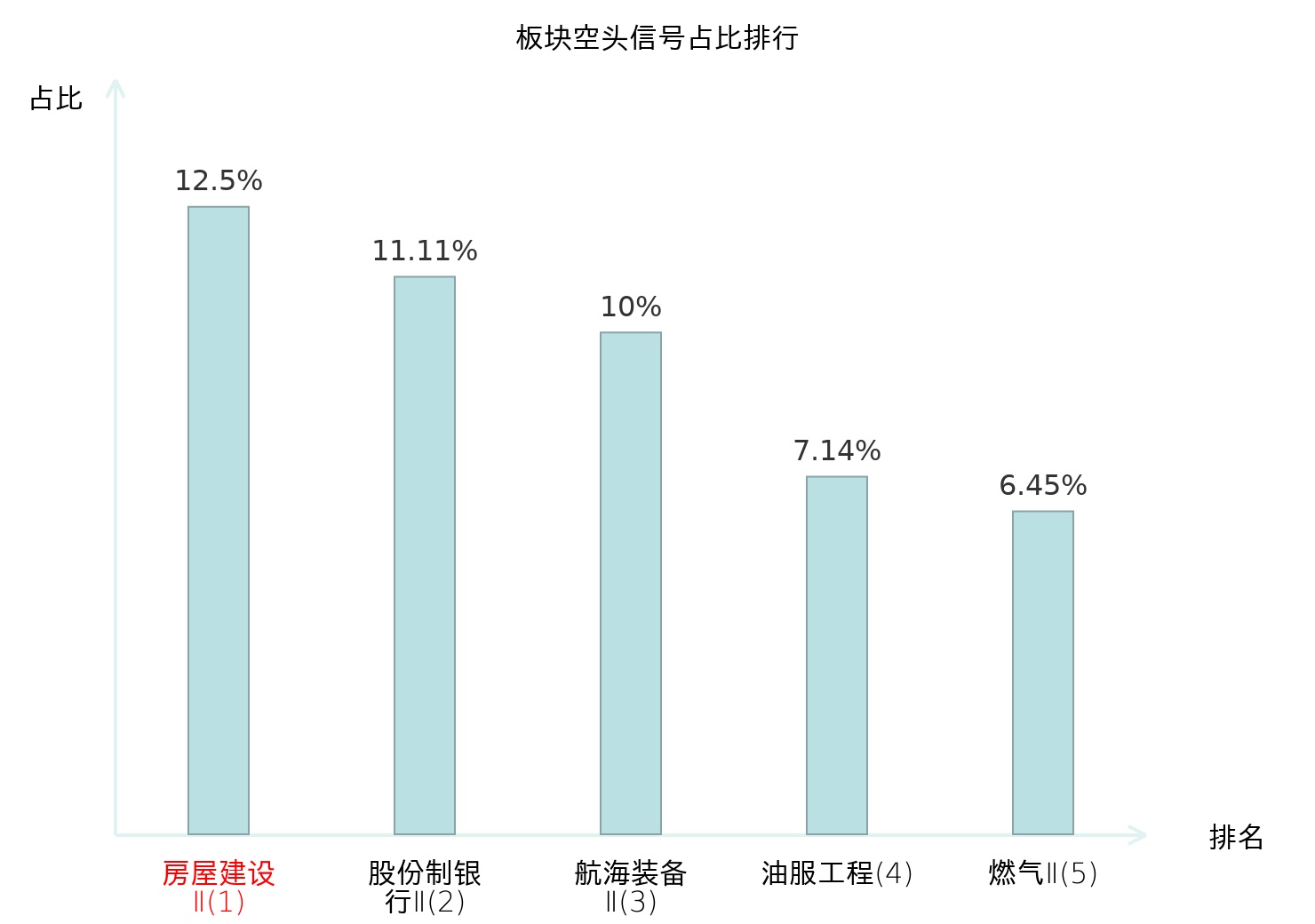 全市场所有行业板块中主力空头信号占比排名中,房屋建设Ⅱ板块位居第一。农化制品板块名次提升最快,较昨日上升112位。