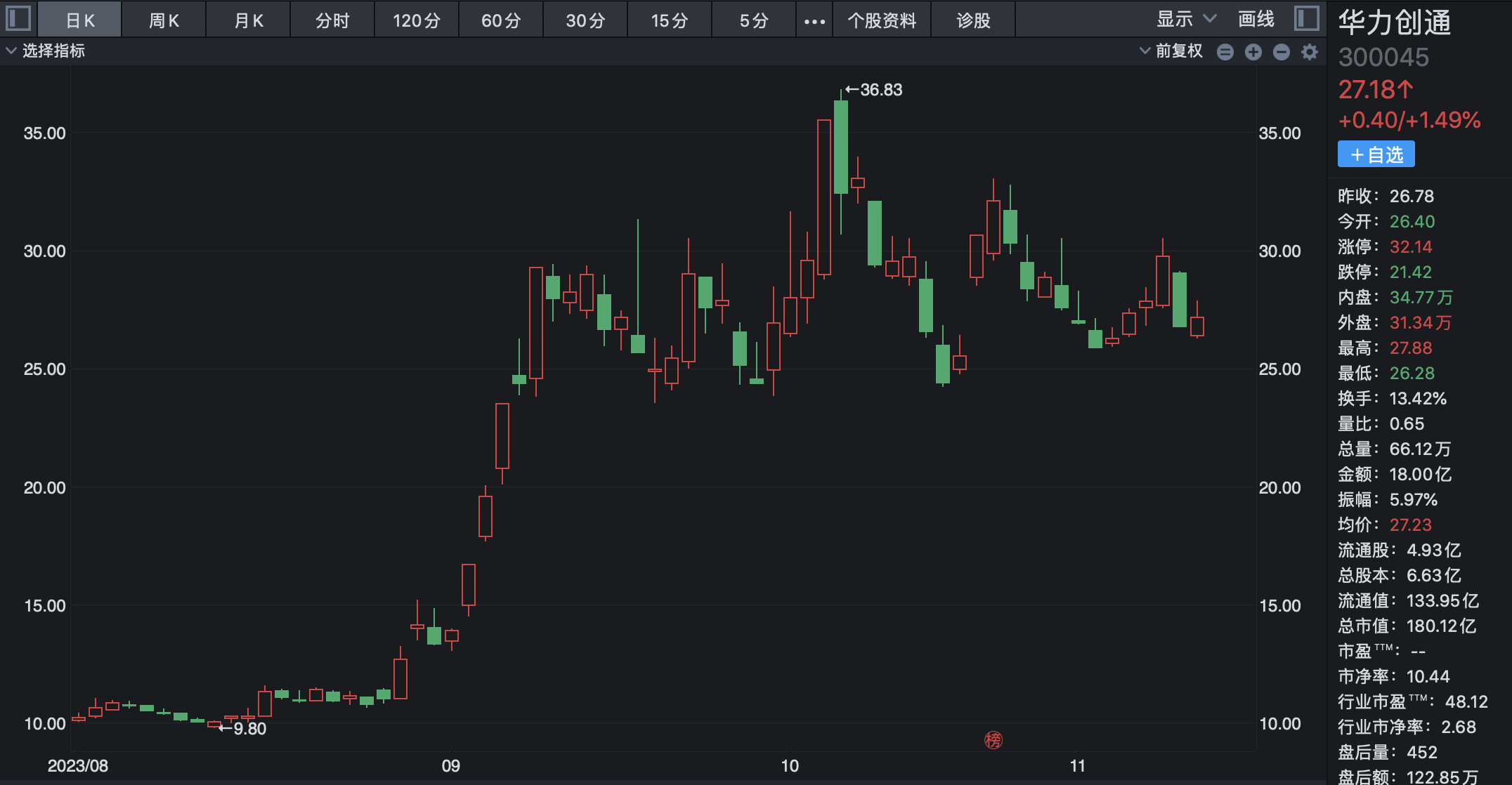 华为助燃剂下华力创通股价创历史新高,硕贝德、龙洲股份上演6天翻倍“飞天”时速。