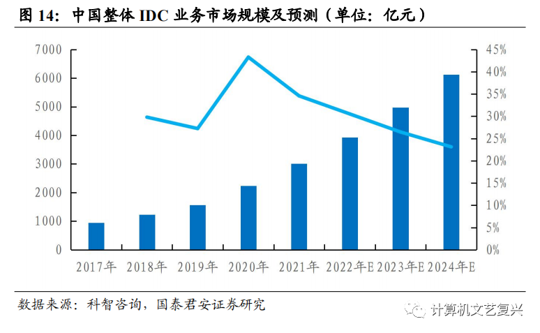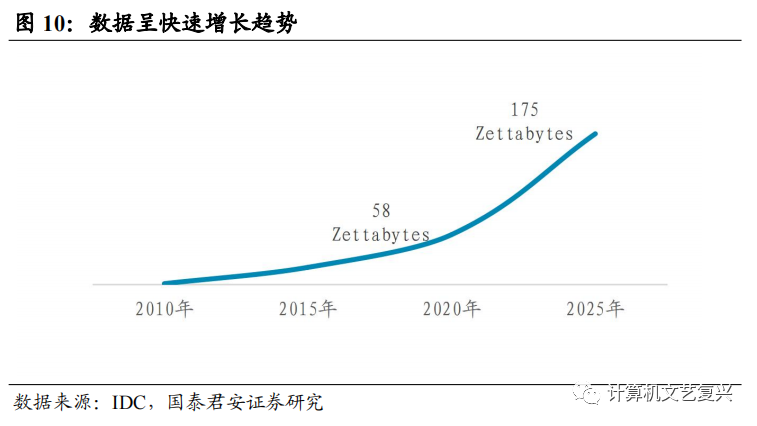 数据量的增加和AI应用的扩展是AI数据中心发展的重要驱动因素。随着物联网、社交媒体和传感器技术等数据源的增多,AI数据中心需要处理和存储更大规模的数据集。根据IDC报告,在2014-2020年,平均每个IT人员管理的数据量从230GB增加到1231GB,超过5倍。而企业数据则预计将以42.2%的速度增长。同时,人工智能技术在各行各业的广泛应用以及对深度学习模型的训练需求也促使了对AI数据中心的需求增加。