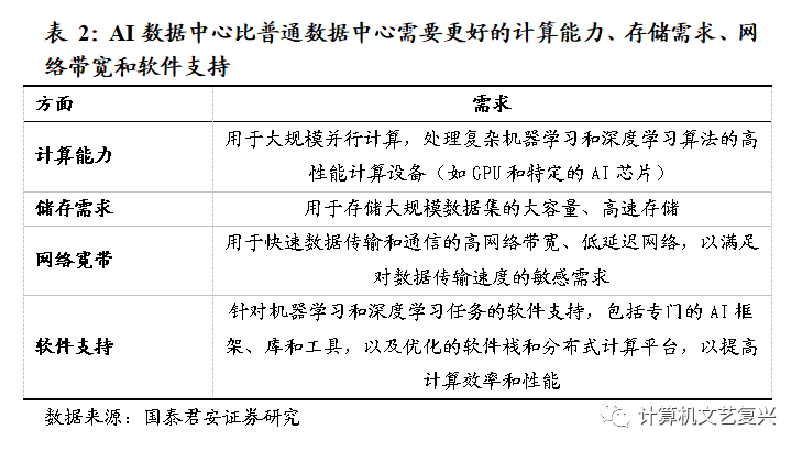 随着AI行业应用继续深入发展,AI数据中心的数量和规模将会持续增加。这一趋势受到数据量增加和应用需求的推动、ChatGPT带来的算力增量需求以及技术创新的支持。AI数据中心作为支持大规模数据处理、深度学习模型训练和推理的关键设施,将发挥重要作用,推动人工智能技术的广泛应用和进一步的创新。