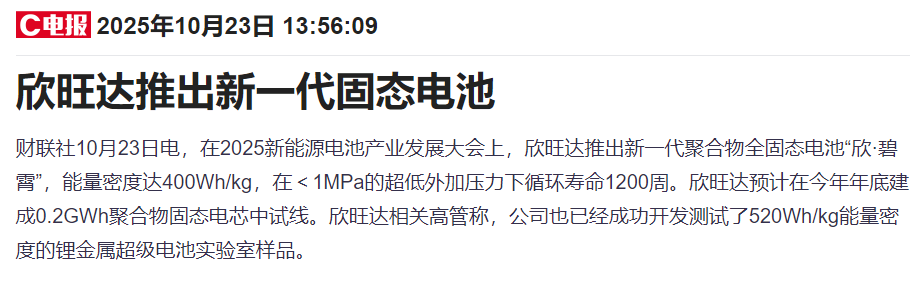 而锂矿资源+固态电池相关概念股股价反弹回暖则是和消息面上广期所碳酸锂主力合约大涨创出9月以来新高的影响(截止收盘涨了4%),同时上午工信部强调系统布局全固态电池,等新一代的电池有关,加上欣旺达又推出了新一代固态电池,接二连三的消息刺激了资金回流相关股,这个方向和前期的机器人、AI一样也是很多个股调整到了不错的支撑位置,短期可能在碳酸锂价格的影响下,走一走反弹。