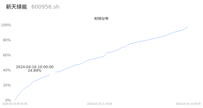600956新天绿能2024年04月16日成交10.93万手,成交金额9737.38万元,相较昨日放量7311手,换手率0.50%,成交清淡。