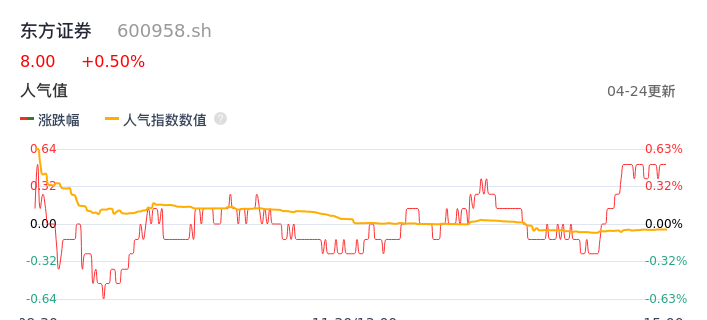04月24日,东方证券收报8.00,股价涨幅0.50%,成交金额1.81亿元,换手率0.31%。