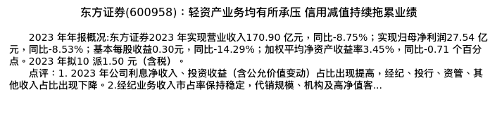 值得注意的是:2024年04月中原证券的张洋分析师,首次发布关于东方证券的研究报告,标题为:东方证券(600958):轻资产业务均有所承压 信用减值持续拖累业绩。
