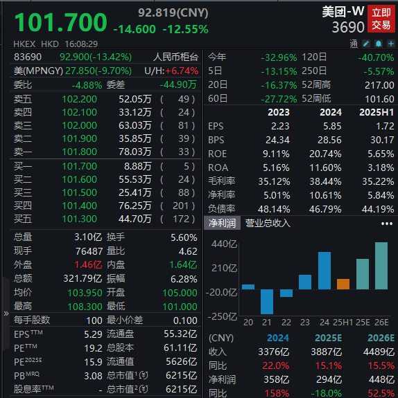 而对于后续的市场判断,交银国际在有关美团业绩的报告中指出,三季度外卖竞争加剧,美团于7月12日宣布日单峰值超1.5亿,按此前季度日均单量/峰值比例判断,预计美团即时配送单量三季度日单或同比增16%,但受补贴及商家投入战略调整影响,预计即时配送收入或同比下降6%(餐饮+闪购),亏损或超150亿元。