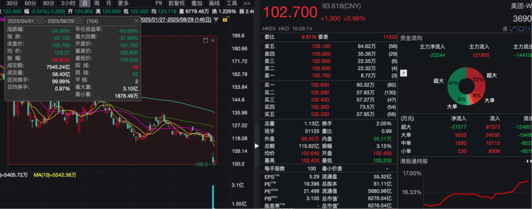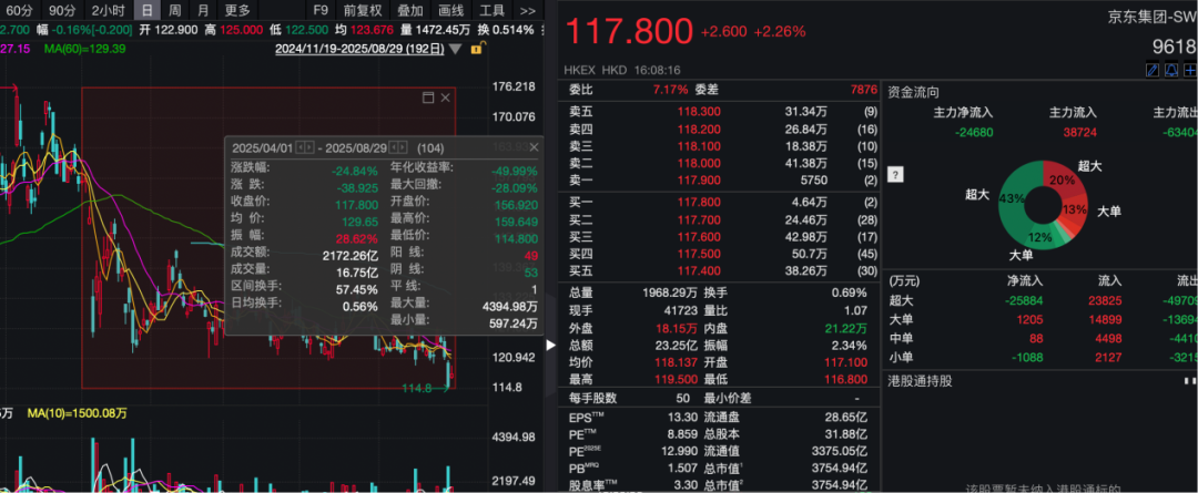 虽然在8月29日,三大平台股价全部飘红,但从4月以来,京东股价累计下跌约25%,美团累计下跌约34%,阿里巴巴累计下跌约8%。