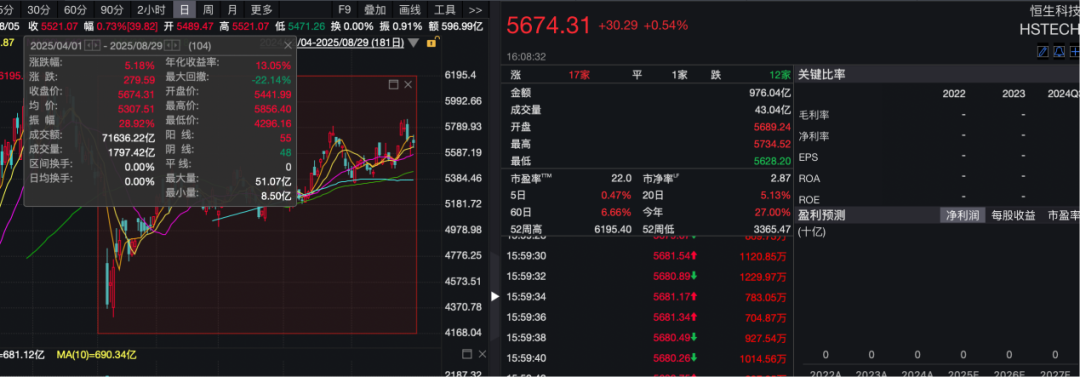 相比之下,恒生科技指数自4月以来的涨幅超过5%。