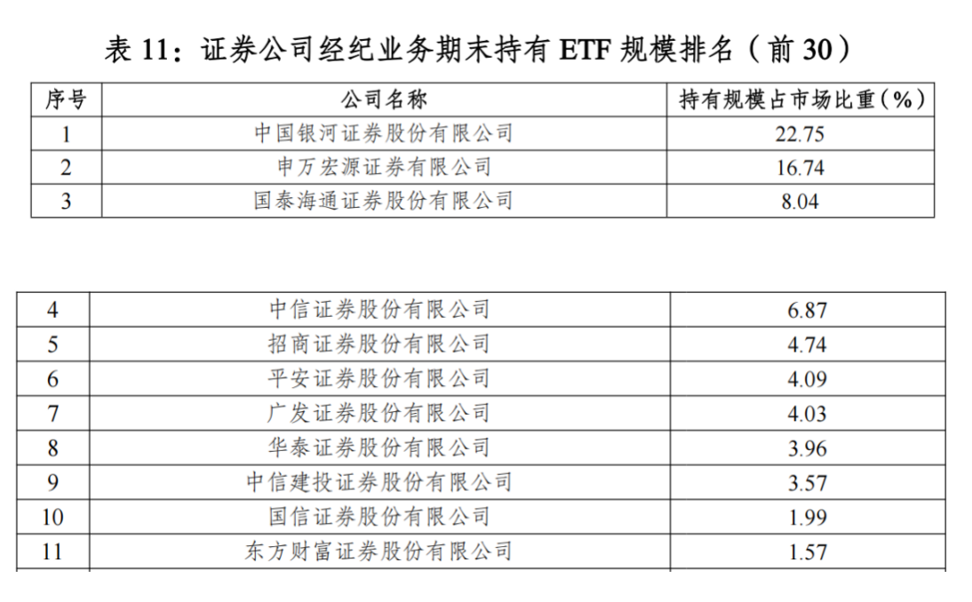ETF持有规模维度,银河证券与申万宏源证券组成的传统“双寡头”合计份额降至39.49%,较8月减少1.04%;国泰海通证券以8.04%的占比跃升至第三,份额环比提升3.34个百分点,打破此前中信证券稳居第三的稳定格局。