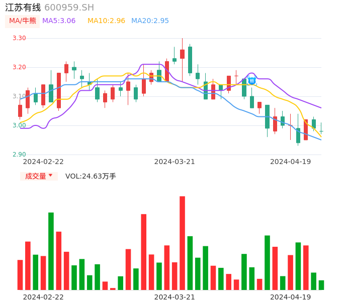 04月19日,江苏有线收报2.98,股价涨幅-0.33%,成交金额7354.02万元,换手率0.49%。