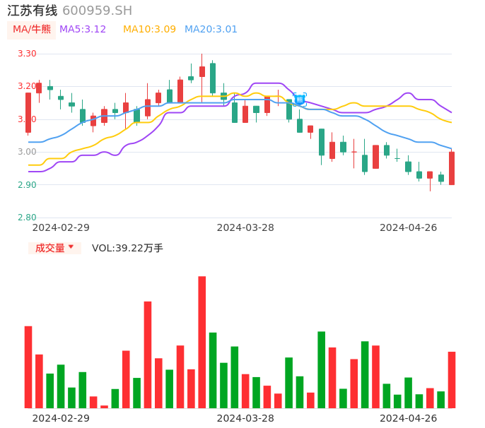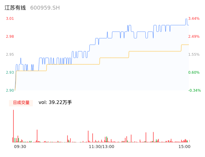 04月26日,江苏有线收报3.00,股价涨幅3.09%,成交金额1.16亿元,换手率0.78%。