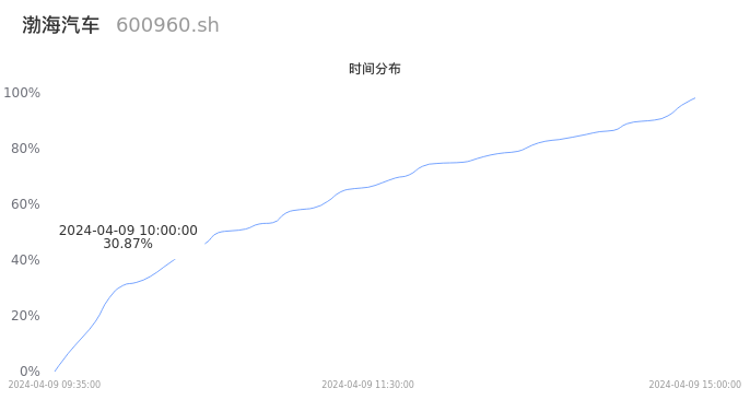 600960渤海汽车2024年04月09日成交8.95万手,成交金额3168.14万元,相较昨日缩量5.03万手,换手率0.94%,成交清淡。