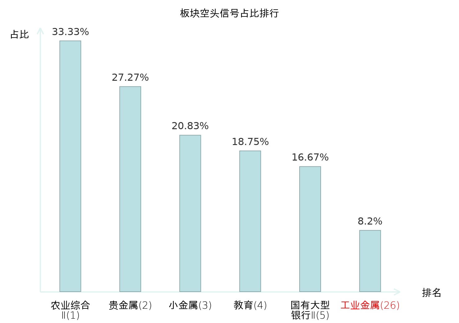 全市场所有行业板块中主力空头信号占比排名中,农业综合Ⅱ板块位居第一。风电设备板块名次提升最快,较昨日上升104位。