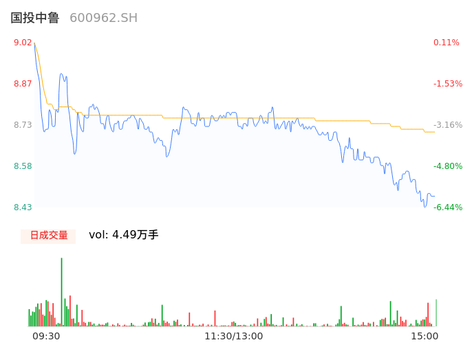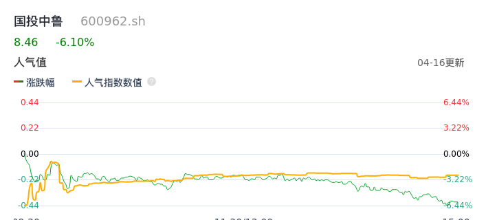 04月16日,国投中鲁收报8.46,股价涨幅-6.10%,成交金额3899.22万元,换手率1.71%。