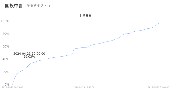 600962国投中鲁2024年04月23日成交1.80万手,成交金额1646.44万元,相较昨日缩量6774手,换手率0.69%,成交清淡。