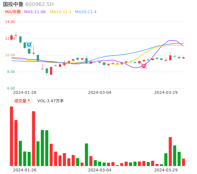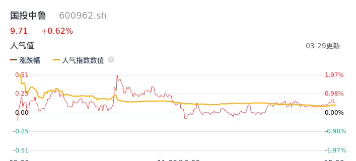 03月29日,国投中鲁收报9.71,股价涨幅0.62%,成交金额3366.95万元,换手率1.32%。