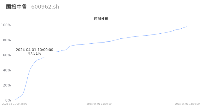 600962国投中鲁2024年04月01日成交5.12万手,成交金额5099.83万元,相较昨日放量1.66万手,换手率1.95%,成交清淡。