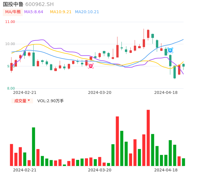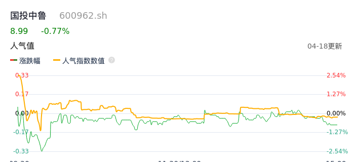 04月18日,国投中鲁收报8.99,股价涨幅-0.77%,成交金额2608.09万元,换手率1.11%。