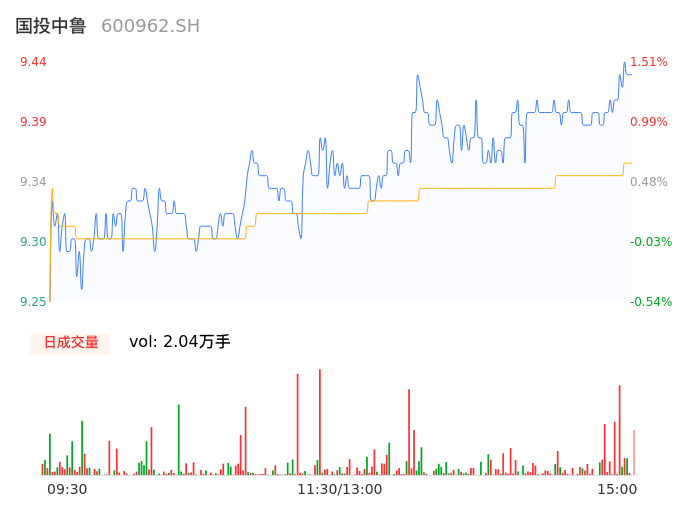 04月26日,国投中鲁收报9.43,股价涨幅1.40%,成交金额1904.89万元,换手率0.78%。