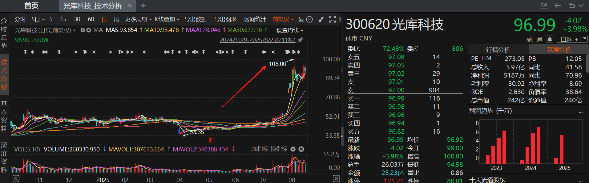 主要产品是光纤激光器件、光通讯器件、激光雷达光源模块及器件的光库科技月内股价累计最大涨幅为63.44%。光库科技8月11日公告称,公司拟以发行股份、可转换公司债券及支付现金的方式向张关明、苏州讯诺投资合伙企业(有限合伙)、刘晓明、杜文刚等6名交易对方购买其合计所持有的苏州安捷讯光电科技股份有限公司100%股权,并拟向不超过35名特定投资者发行股份募集配套资金。本次交易预计构成重大资产重组。标的公司主营业务为光通信领域光无源器件的研发、生产、销售。通过本次交易取得标的公司控股权,有利于拓宽公司产品与技术布局,迅速形成规模化的高效制造能力,建立更加完备的产品矩阵,提升下游客户覆盖与产品交付能力,进一步强化公司在光通信领域的行业地位。