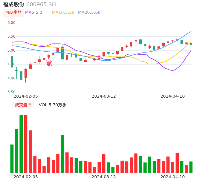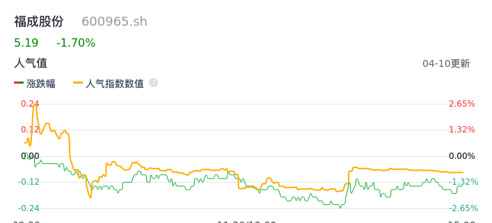 04月10日,福成股份收报5.19,股价涨幅-1.70%,成交金额2963.89万元,换手率0.70%。