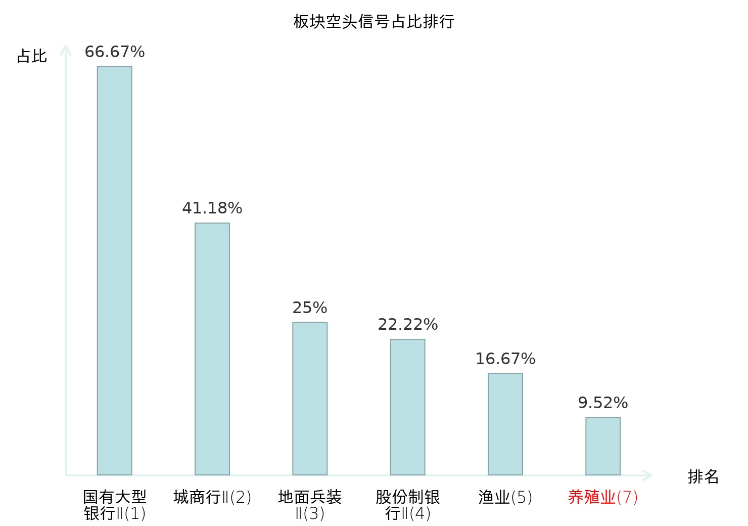 全市场所有行业板块中主力空头信号占比排名中,国有大型银行Ⅱ板块位居第一。小金属板块名次提升最快,较昨日上升117位。