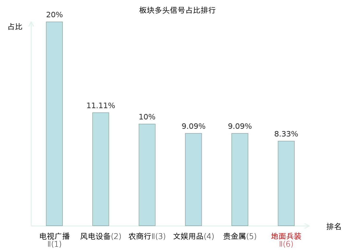 全市场所有行业板块中主力多头信号占比排名中,电视广播Ⅱ板块位居第一。农商行Ⅱ板块名次提升最快,较昨日上升112位。