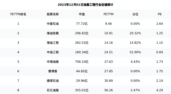从估值角度看:海油发展最新市盈率PETTM为10.91,在行业内排名2/13,处于20.32分位。